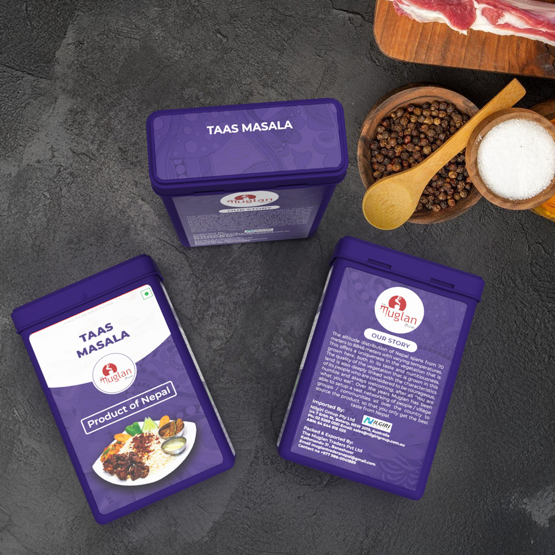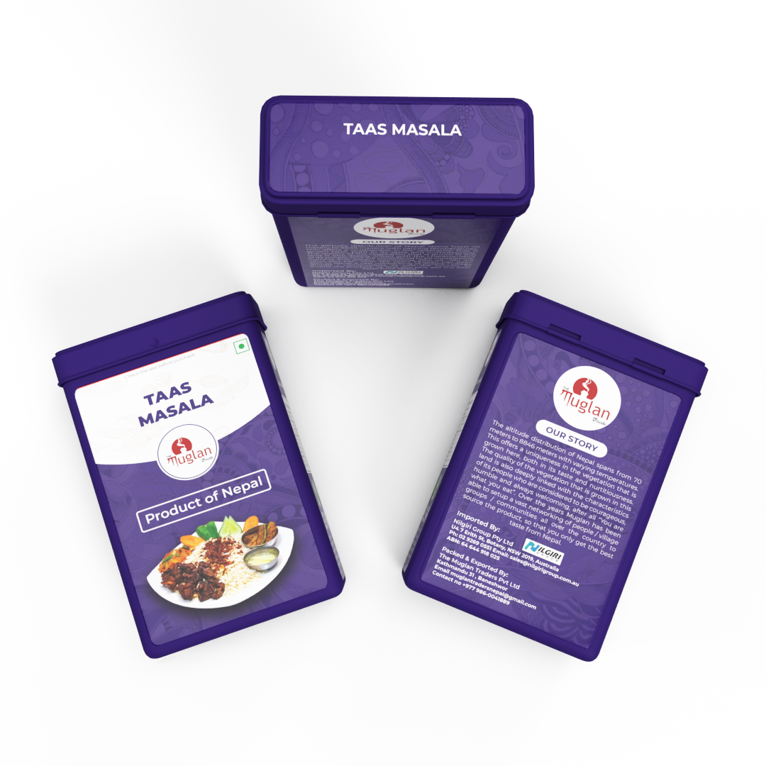 Designed premium food packaging for Muglan Traders, a company exporting Nepali spices to Australia. The packaging reflects authenticity, freshness, and cultural richness, ensuring a visually appealing and informative design that enhances brand identity and market appeal. The design balances aesthetic appeal with functionality, incorporating vibrant visuals, essential product details, and compliance with export standards for an engaging consumer experience.