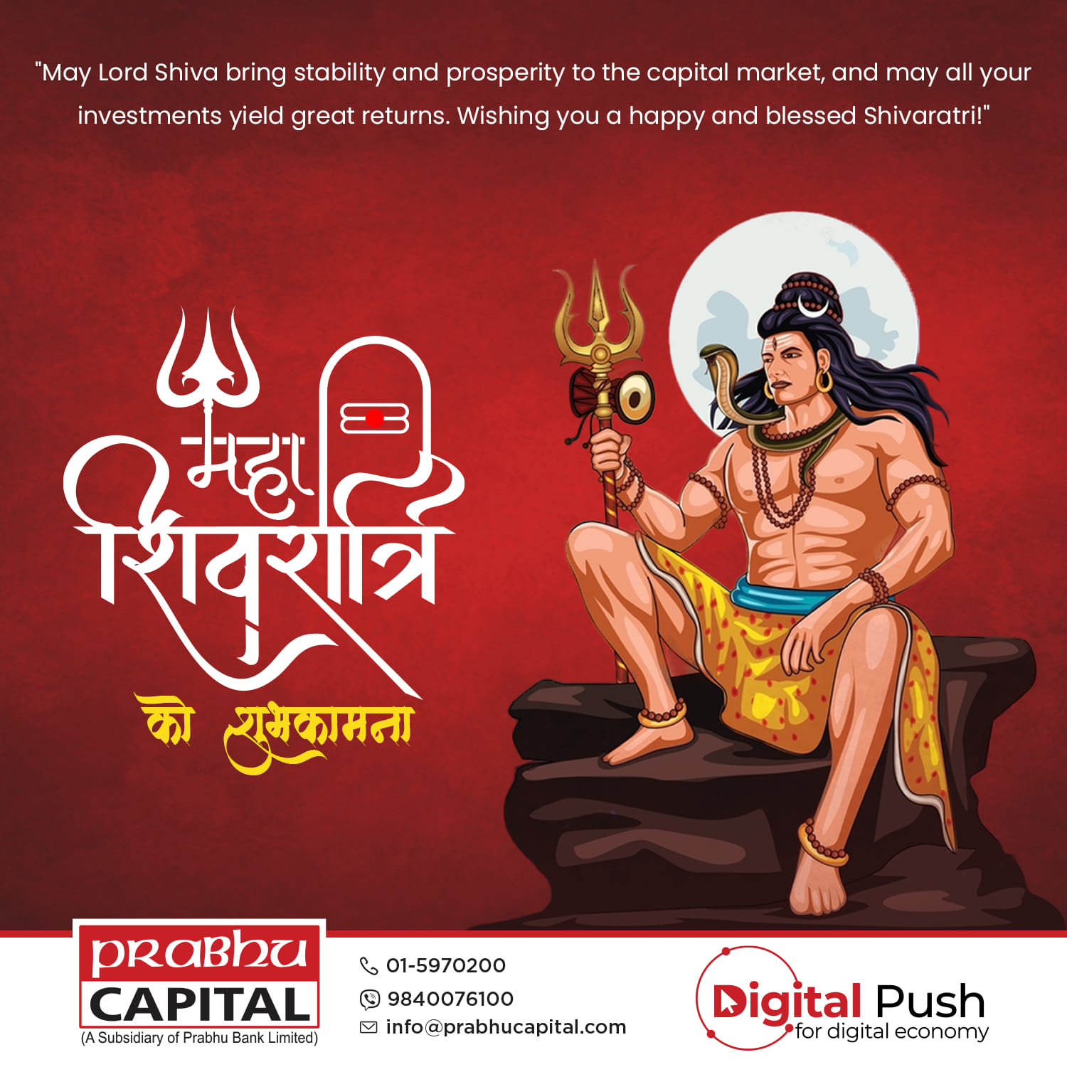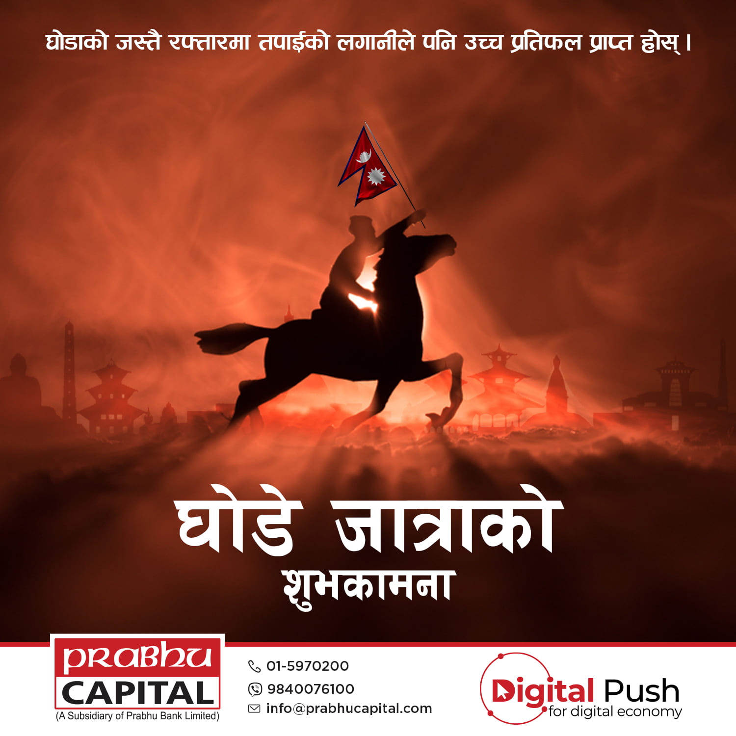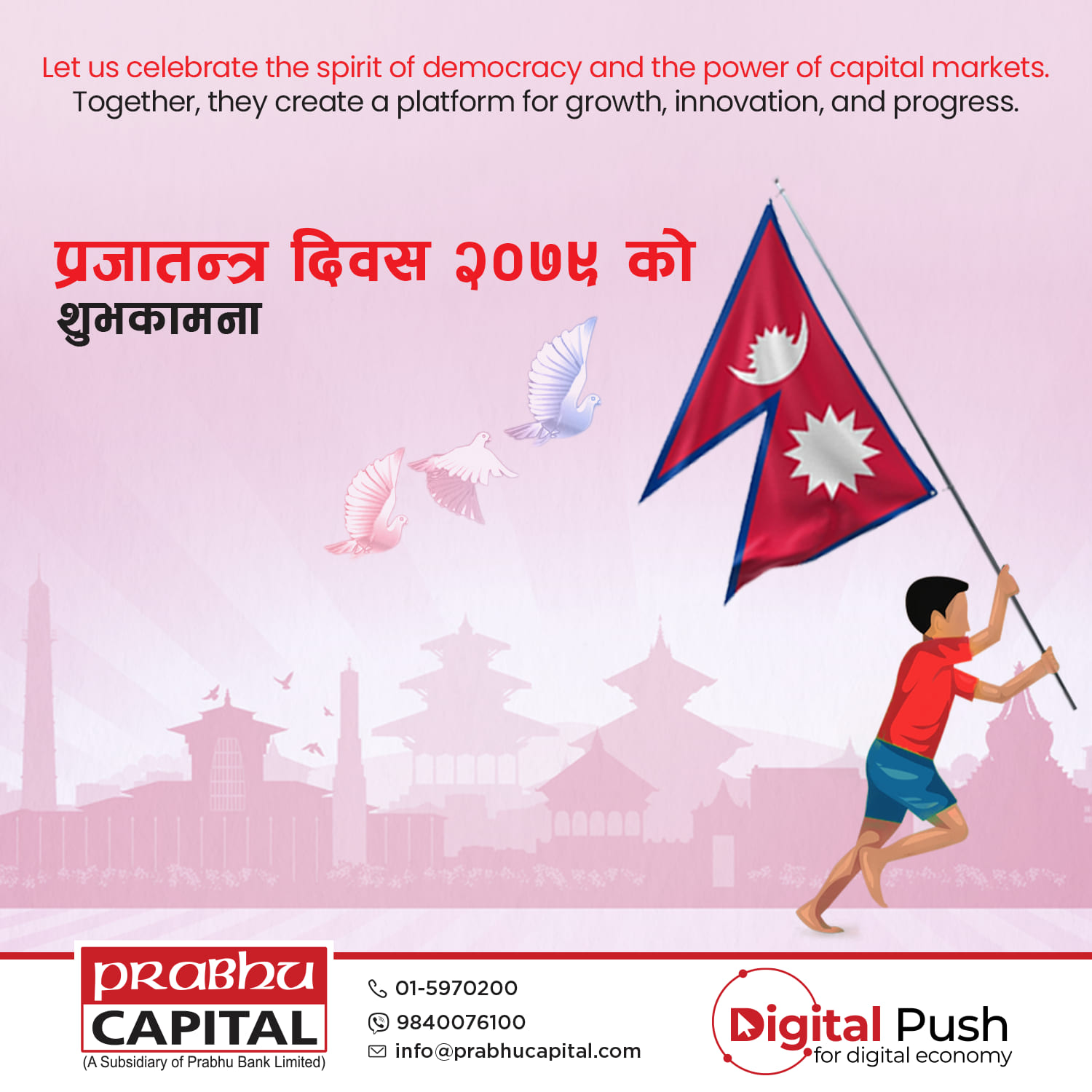 To enhance the social media presence of Prabhu Capital Ltd., a series of digital posters have been designed, highlighting its leadership in merchant banking and commitment to modern financial services. These visually appealing designs reflect the company’s strong brand identity while effectively showcasing key offerings such as depository participant (DP) services, issue management, underwriting, portfolio management, and mutual fund management. With a professional and engaging approach, the posters reinforce Prabhu Capital’s role in driving the growth of Nepal’s capital market.