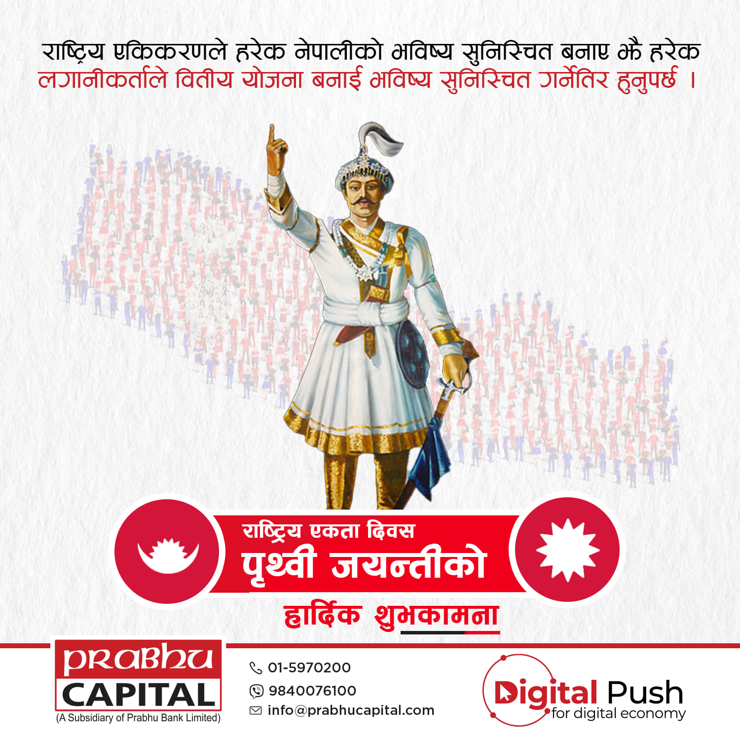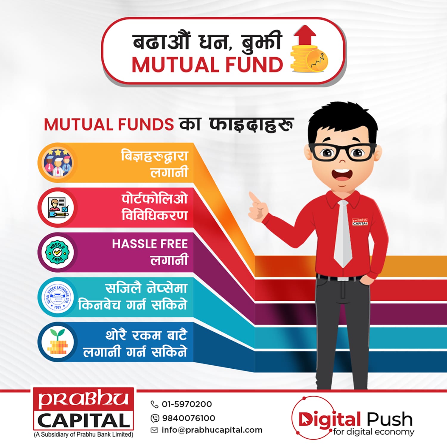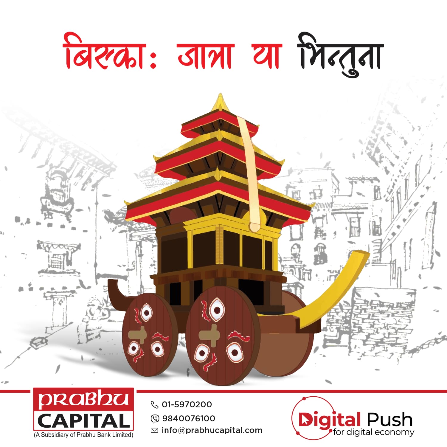 To enhance the social media presence of Prabhu Capital Ltd., a series of digital posters have been designed, highlighting its leadership in merchant banking and commitment to modern financial services. These visually appealing designs reflect the company’s strong brand identity while effectively showcasing key offerings such as depository participant (DP) services, issue management, underwriting, portfolio management, and mutual fund management. With a professional and engaging approach, the posters reinforce Prabhu Capital’s role in driving the growth of Nepal’s capital market.